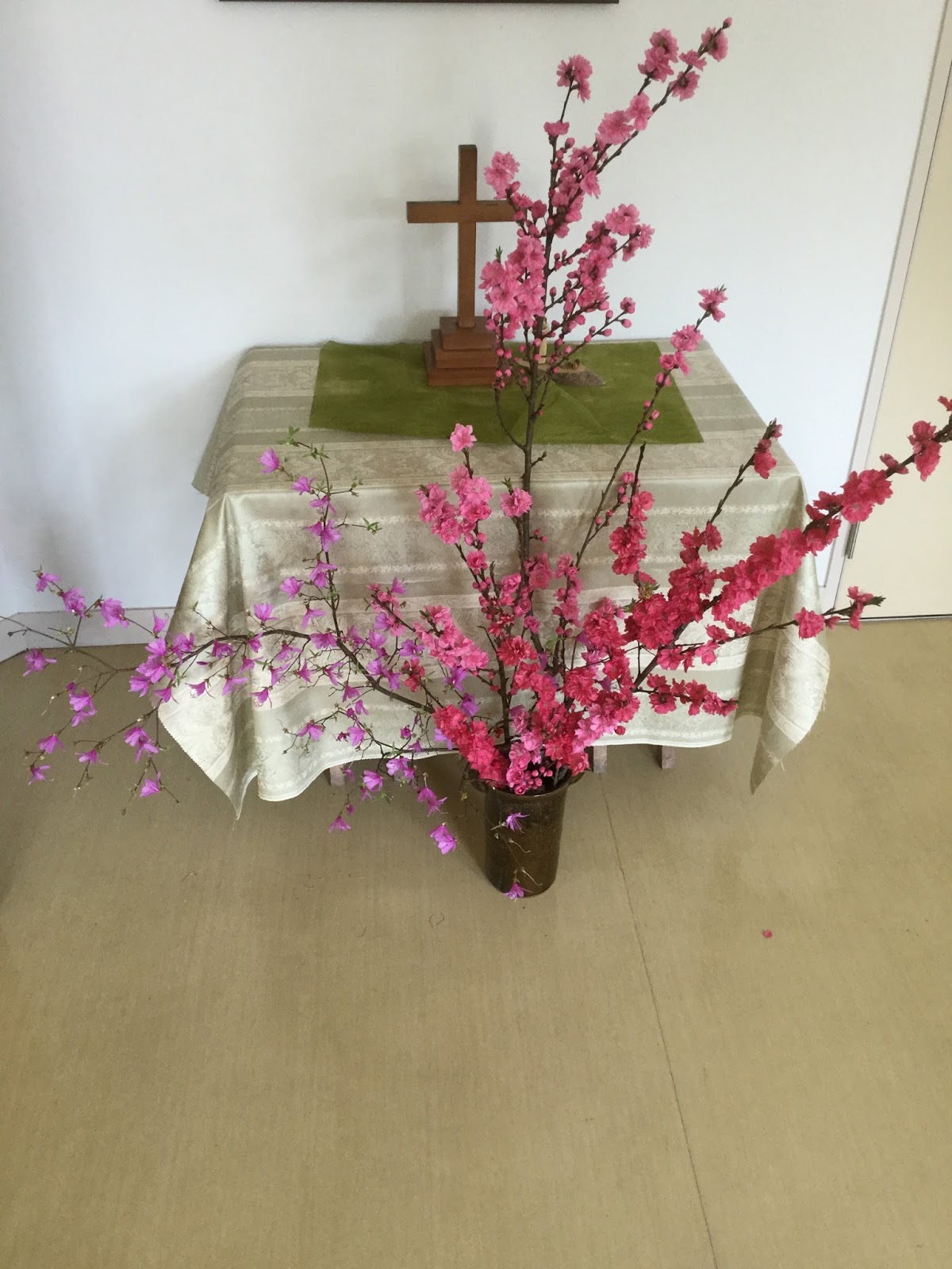 4/18 クリスマスローズが捧げられました。赤と緑です。